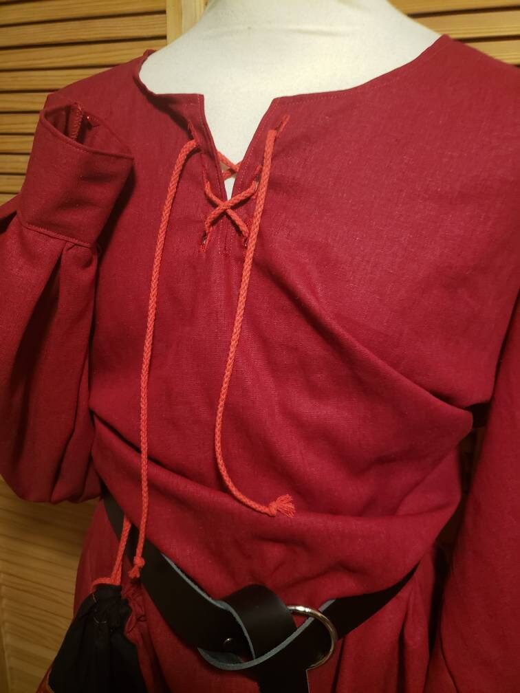 ***About*** The Adventuring Tunic is a classic staple to any garb collection, and makes an excellent base layer. With it's lace-up keyhole neckline and gathered sleeves with 2 inch cuffs, this tunic can be made in cotton, gauze, linen, or satin, each giving a unique look.