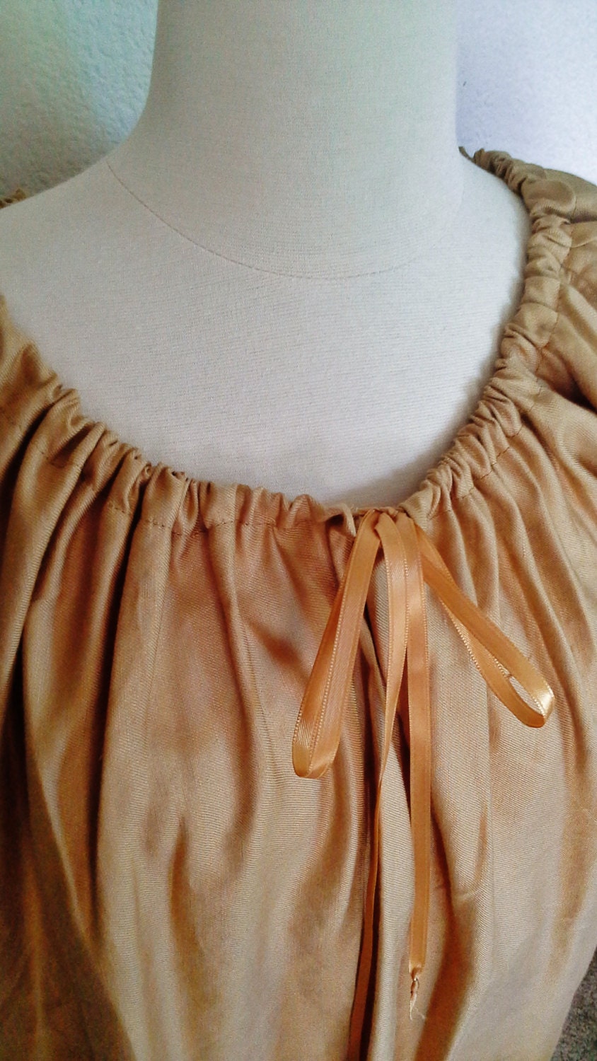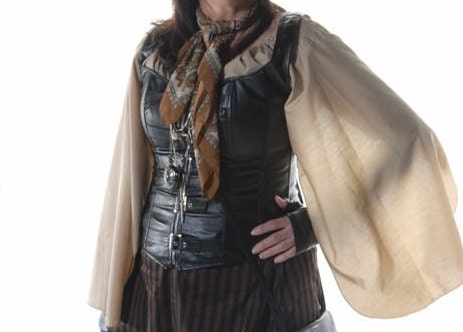 This one of a kind chemise is light and breezy, perfect for summer! It feels like wearing pajamas, and is extra long to help tuck into your skirt or pants. This piece can be worn with a skirt or pants, belt or cincher, or even just with your blue jeans as everyday wear! The ribbon at the neckline allows you to decide how much or little you want to show (let me know if you'd rather have elastic) and the "wings" on the shoulders flutter as you walk, giving you a delightful breeze while still looking viciously hot.