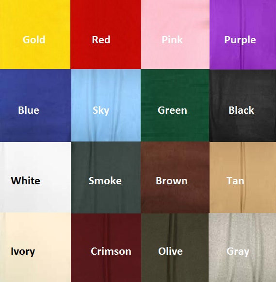 Choose your colors and length. Comes with tied closure. Totally machine washable and stain resistant.