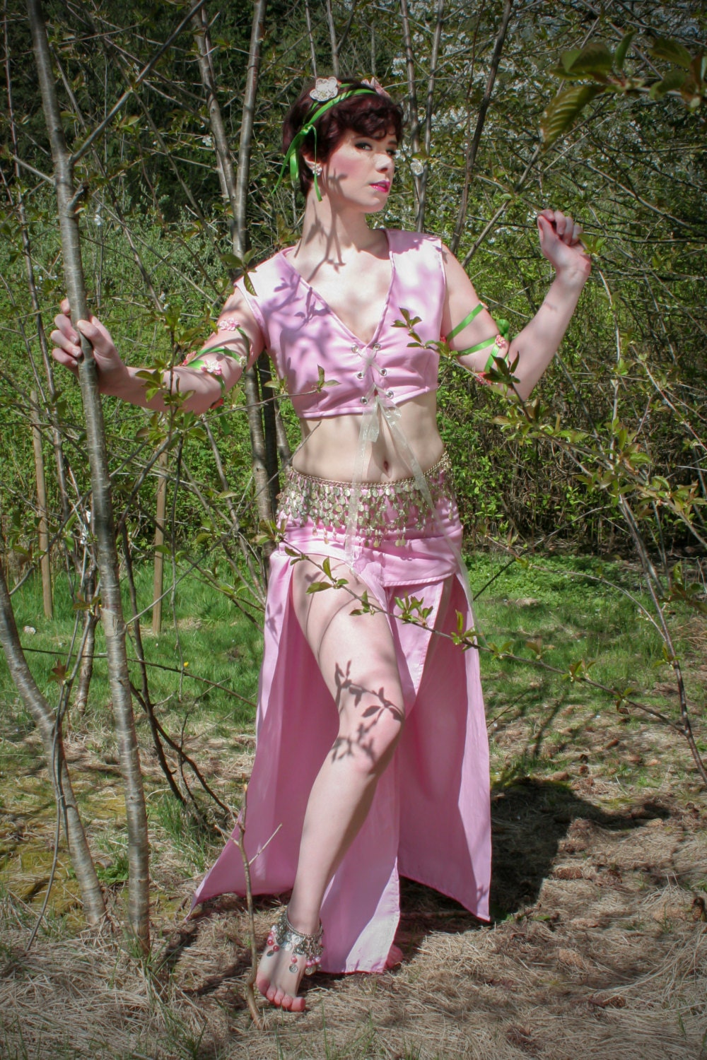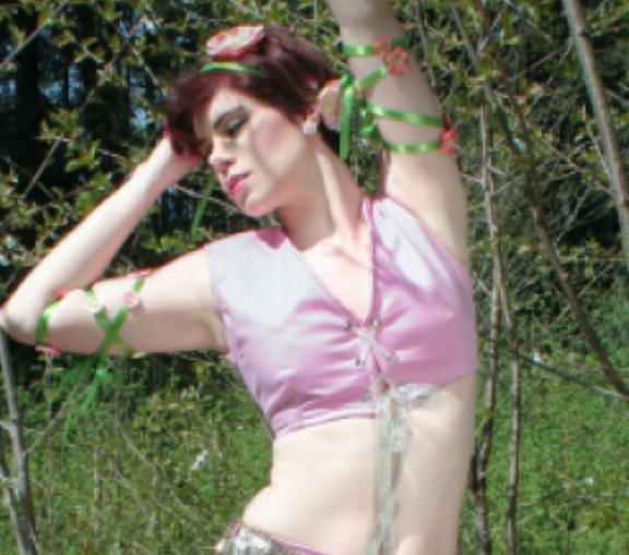 The first cropped bodice from Chicken Vicious, the Dancer's Bodice hugs the bust tightly and leaves the tummy free. Looks great when paired with a blouse or underdress, but can also be worn on its own. These bodices are great for belly dancers or pregnant women, or anyone who likes mobility. (Model is wearing the Dancer's Bodice and Dancer's Skirt in pink.)