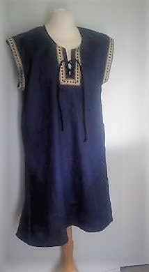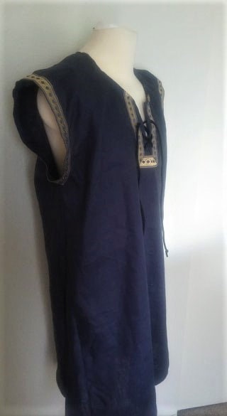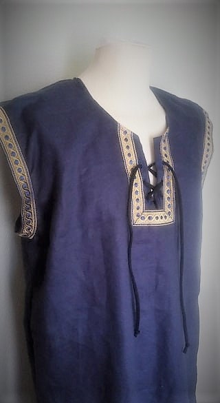 If you need an easy and comfortable way to upgrade your look after a long day of fighting, The Knight's Tunic is your answer. Sleeveless and cut with a lace-up facing at the neckline, the tunic easily slips on over your other garb, or can be worn on its own for those warmer months. The tunic "bells out" from the armpit to give you plenty of room to wear it loose or tuck it in.