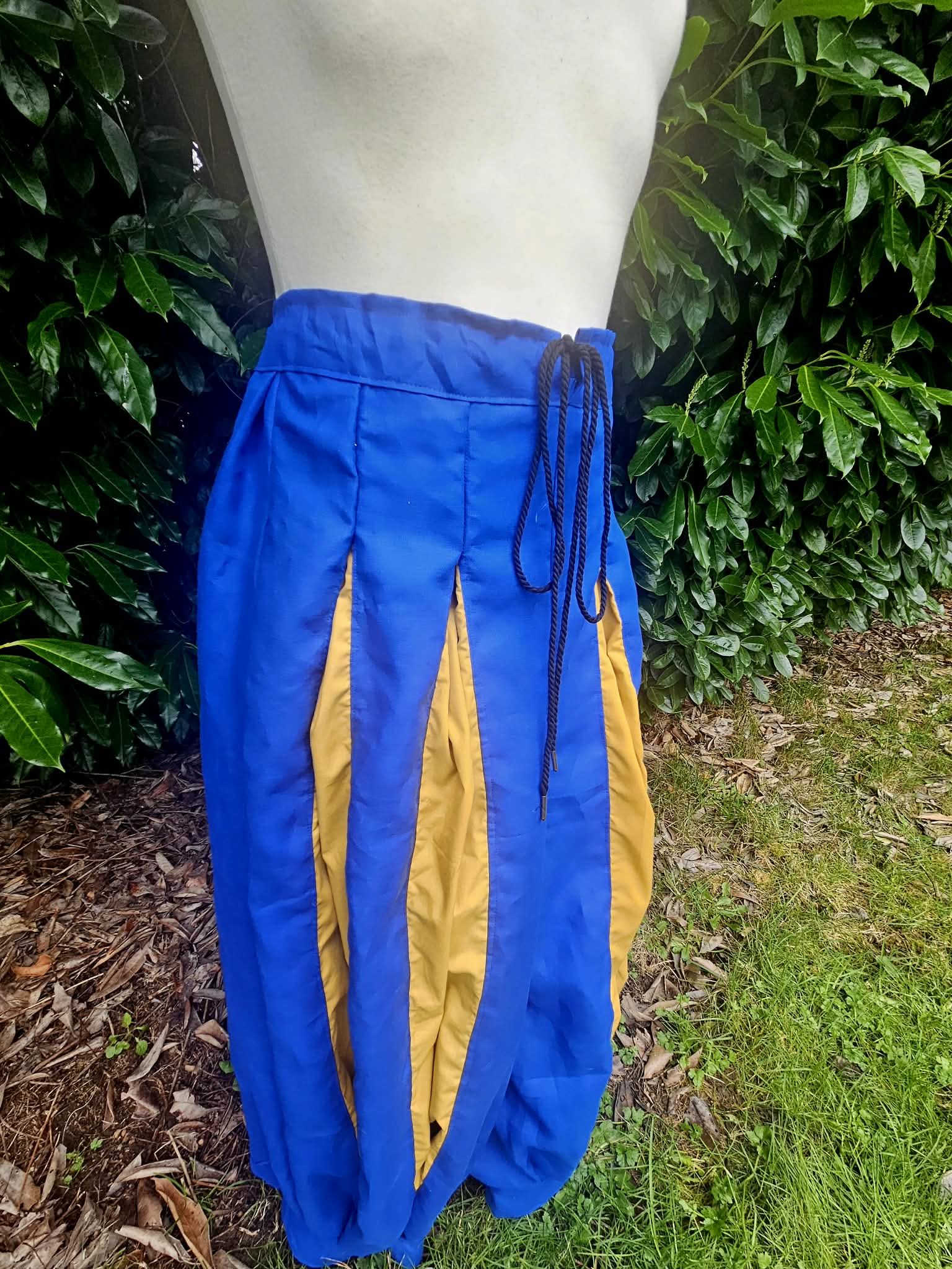 Nice, loose drawstring pants that you can easily move in. With plenty of room in the legs and crotch, but a nice gathered fit around the waist and cuffs, these pants will soon become a favorite in your collection.