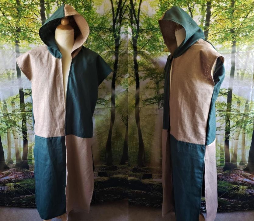 A basic, cozy surcoat in a warm and waterproof linen. This is a great jerkin for anyone who just needs a basic, single color jacket that will keep them warm and dry in the coolor weather. The look is flattering on all sizes.